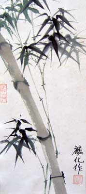 In Chinese painting bamboo, an evergreen, can represent youth, longevity, suppleness, strength, endurance, modesty, summer, and luck. Many Chinese paintings consist exclusively of bamboo because of its importance in China. Even when bamboo is the focus of the painting, small birds may be seen sitting in the bamboo or flitting about the bamboo. In other Chinese paintings, bamboo is simply used as part of the background.