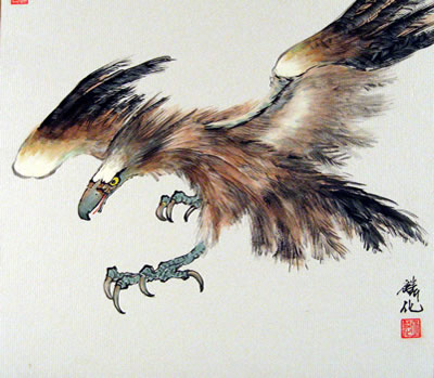 Paintings are created on Washi paper that has been mounted onto gold trim art board. This process produces paintings that do not need framing and come ready to be displayed in your home.